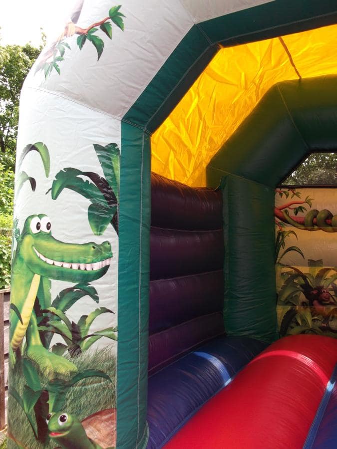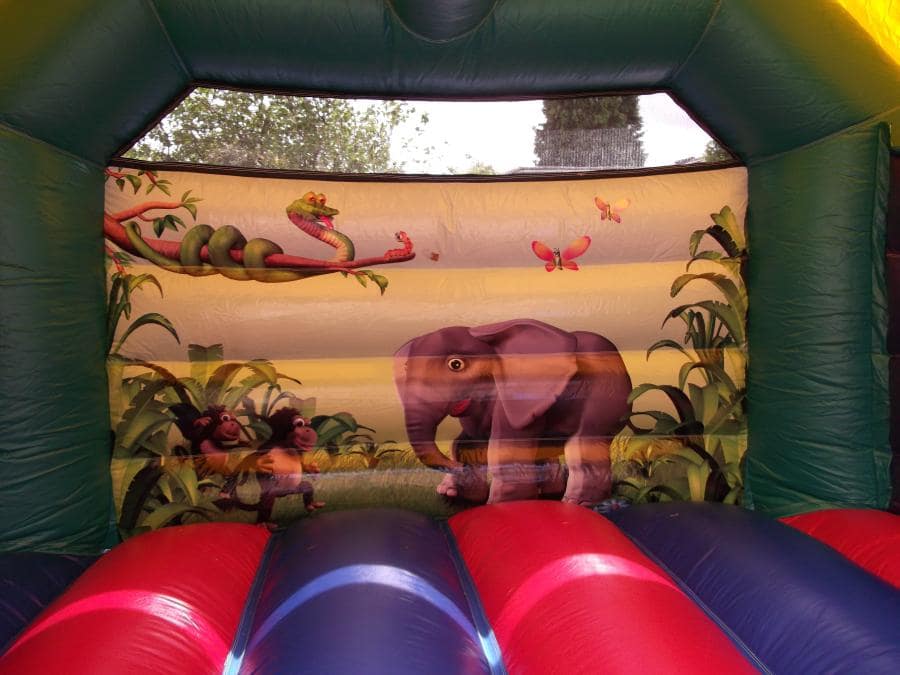 This quality 12 x 12 Childrens Jungle Bouncy is sure to go down well with your children. One of the best quality castles on the market, a perfect fit in most gardens and a real party favourite! Fully featured Bouncy Castle with sewn in shower cover, deep bounce bed, netted open areas, superb digitally printed artwork in a magical Jungle theme and a fully webbed bed and step.
