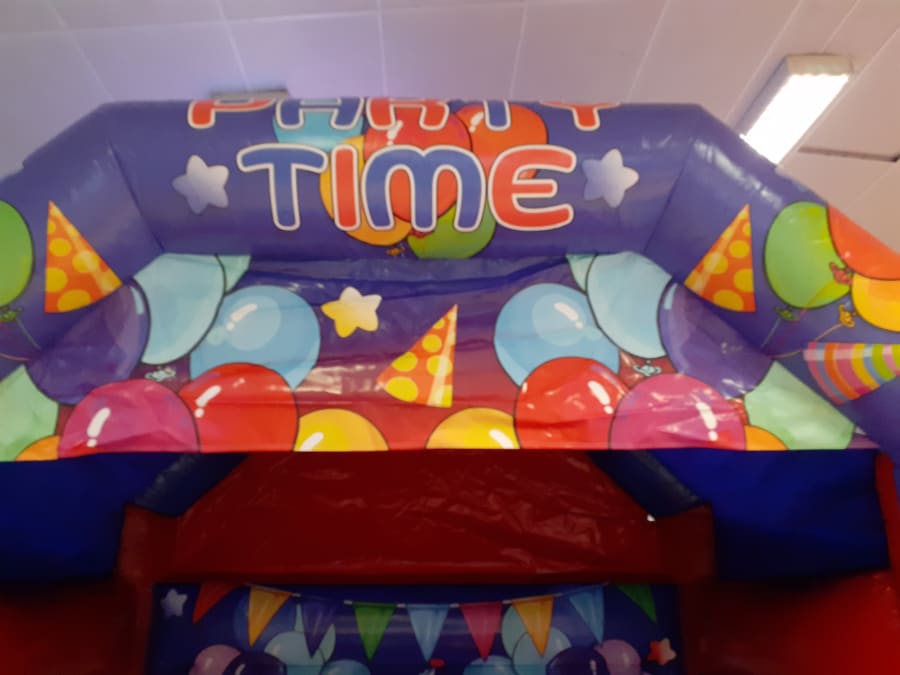 New for 2024 children's 12x12 Party Time castle in glossy material. Suitable for Outdoors or Indoor Venues.