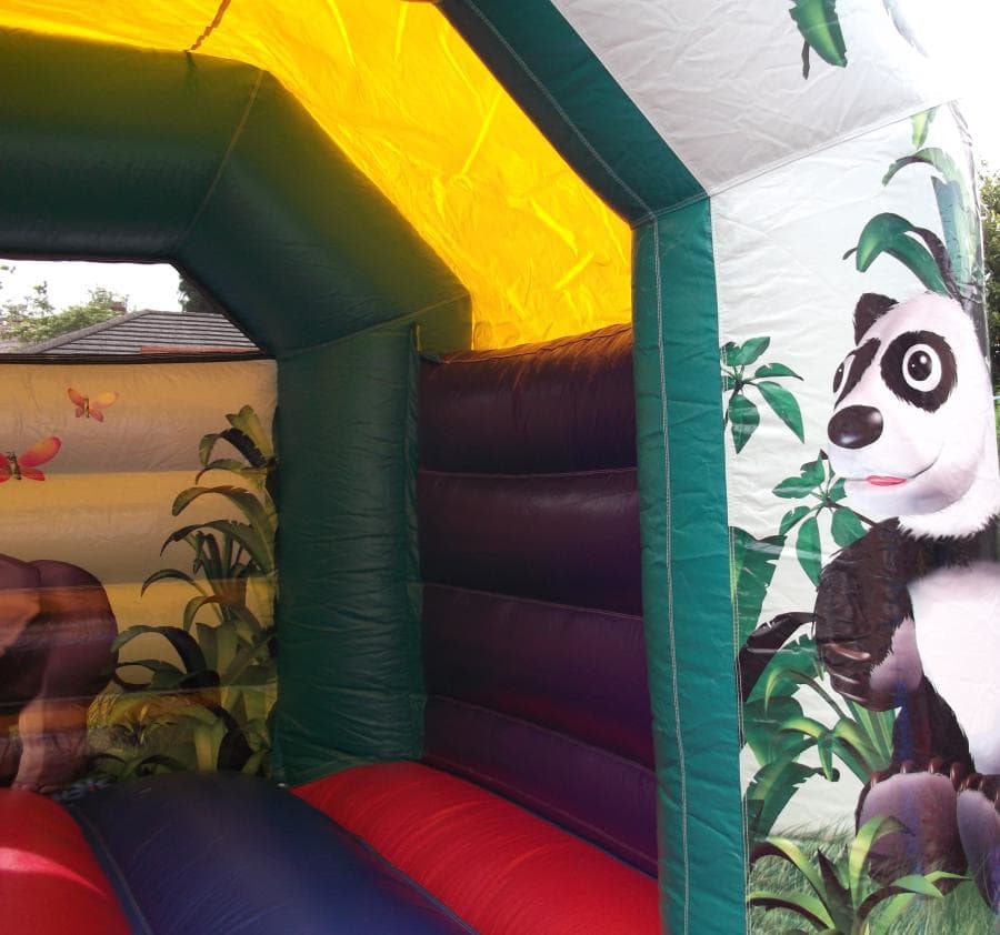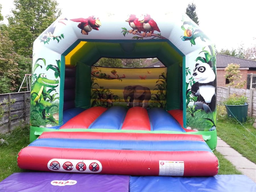 This quality 12 x 12 Childrens Jungle Bouncy is sure to go down well with your children. One of the best quality castles on the market, a perfect fit in most gardens and a real party favourite! Fully featured Bouncy Castle with sewn in shower cover, deep bounce bed, netted open areas, superb digitally printed artwork in a magical Jungle theme and a fully webbed bed and step.