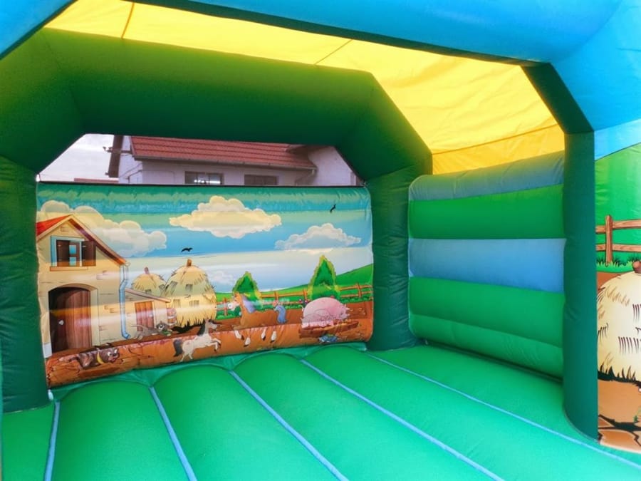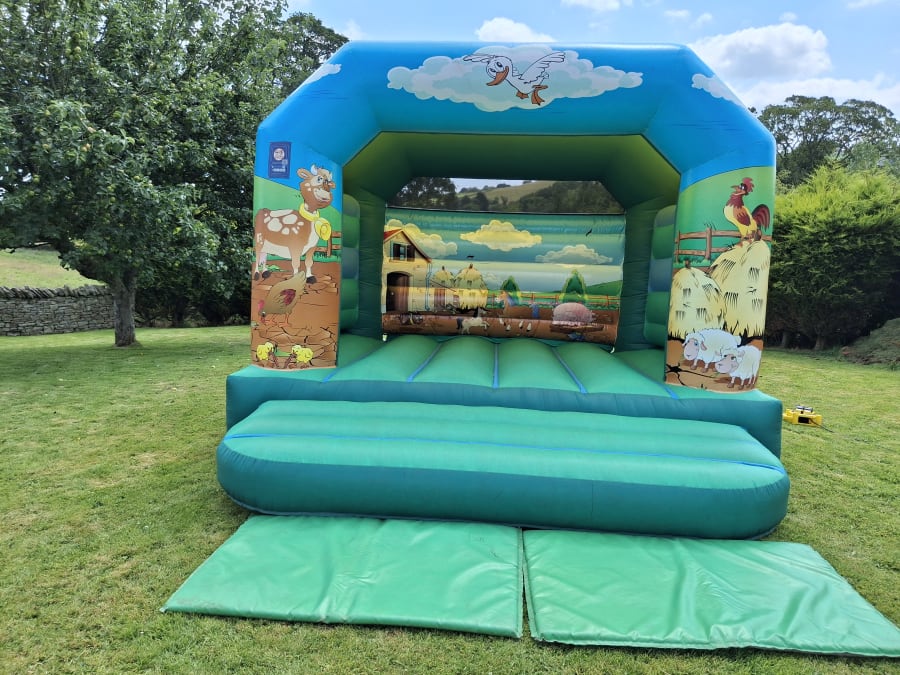 12x12 Childrens Bouncy Castle in a Farmyard theme, especially popular with the younger kids.