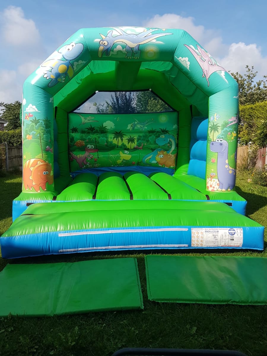 Children's 12 x 12 Bouncy Castle in a Dinosaur theme. New for 2021